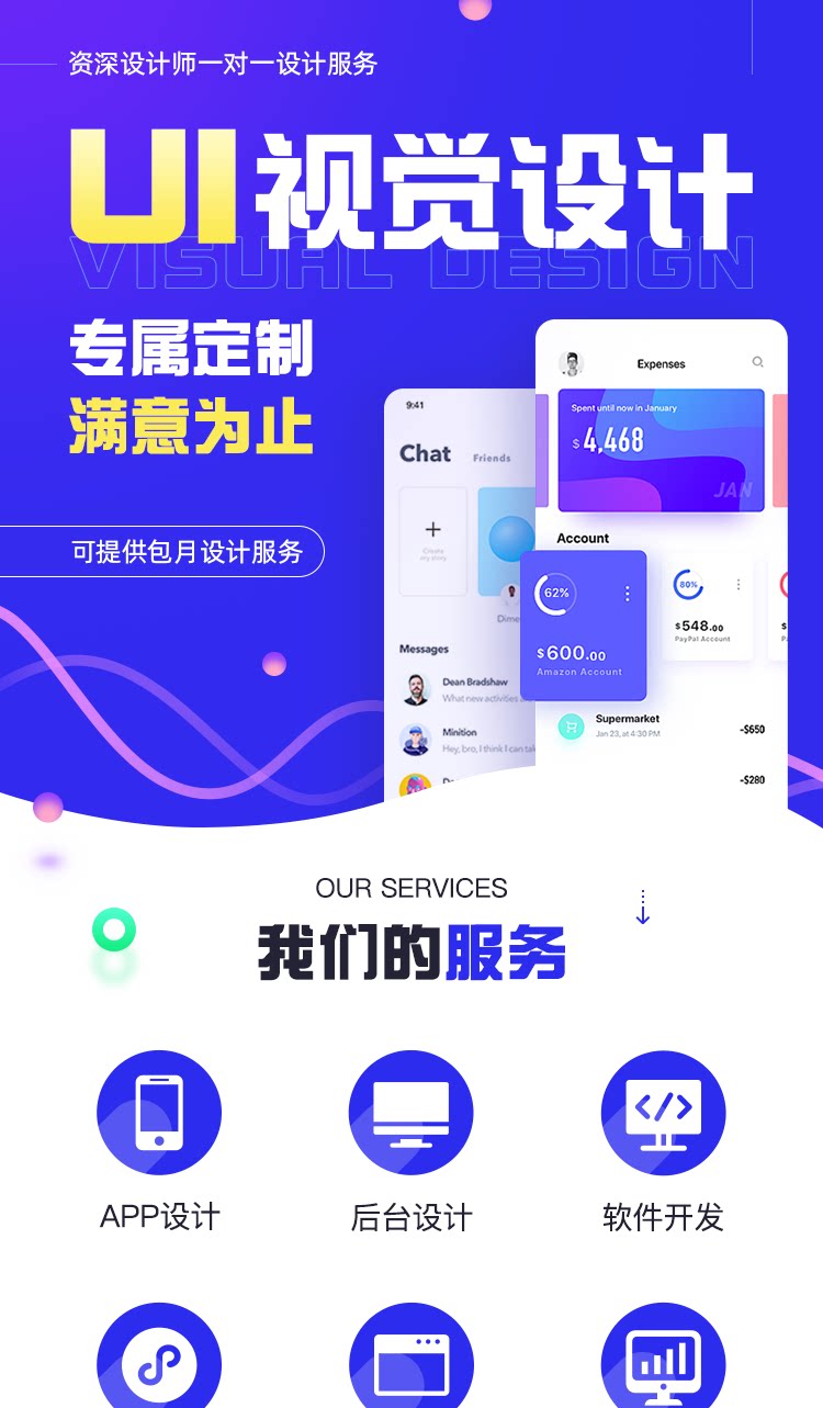 UI设计小程序界面设计数据可视化大屏app界面网页设计后台软件H5