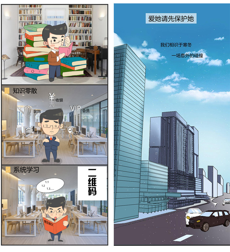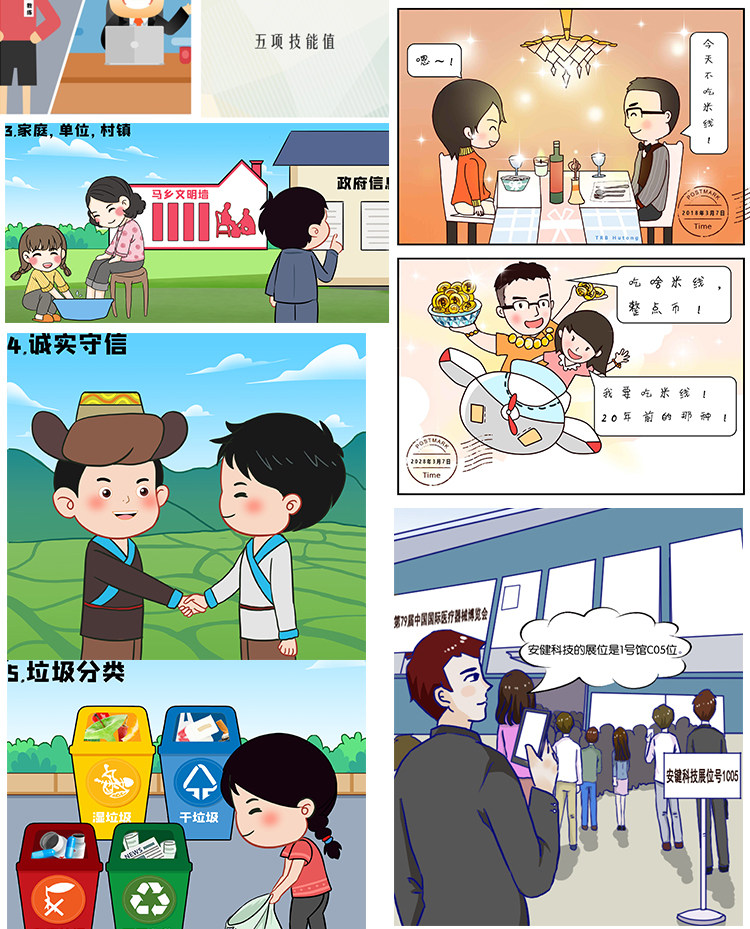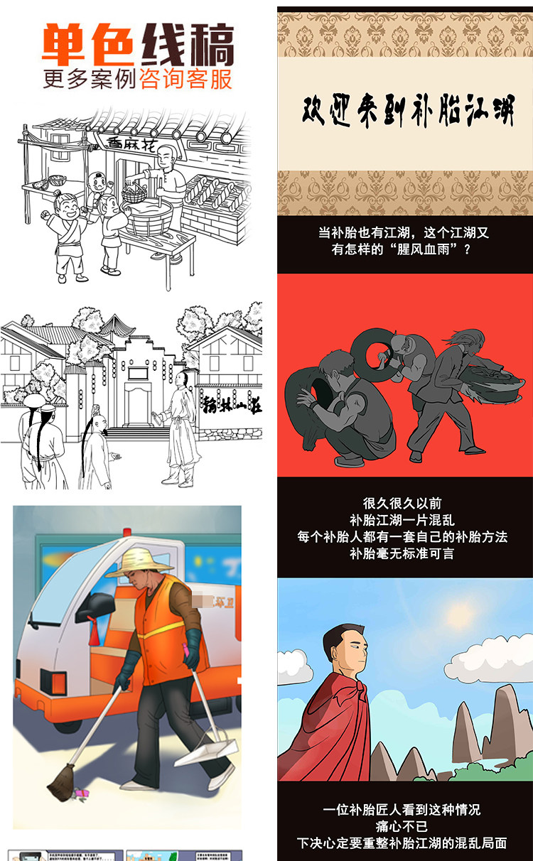 商业企业四格多格人物场景漫画插画条漫绘本连环画设计定制作